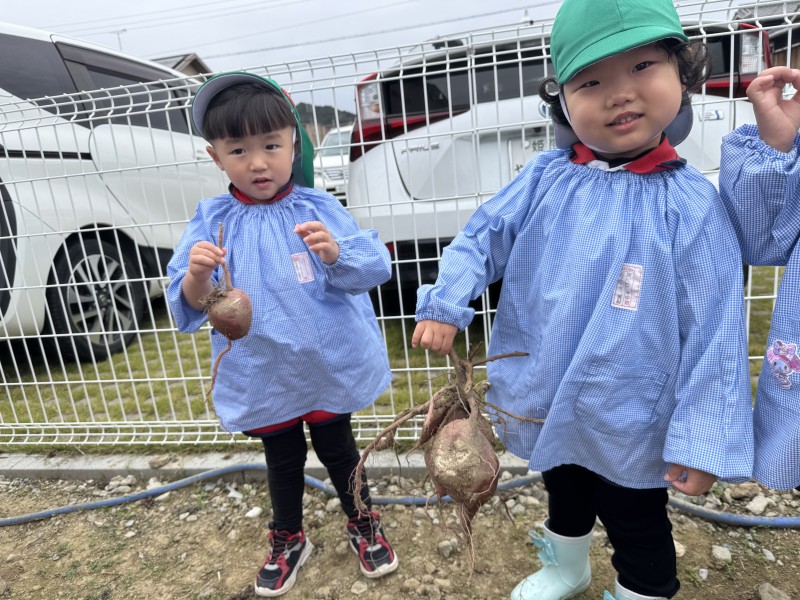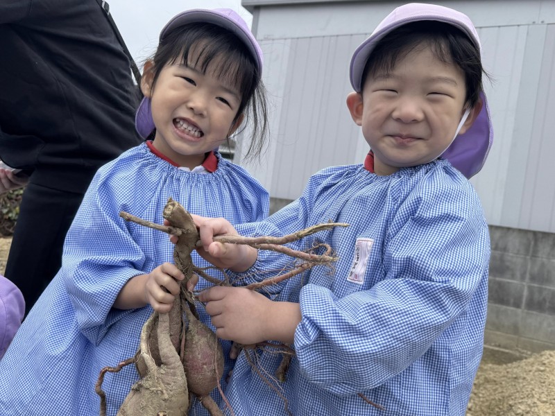 予定通りにはできませんでしたが、雨が止んだタイミングで園の畑へ行って芋掘りをしました!