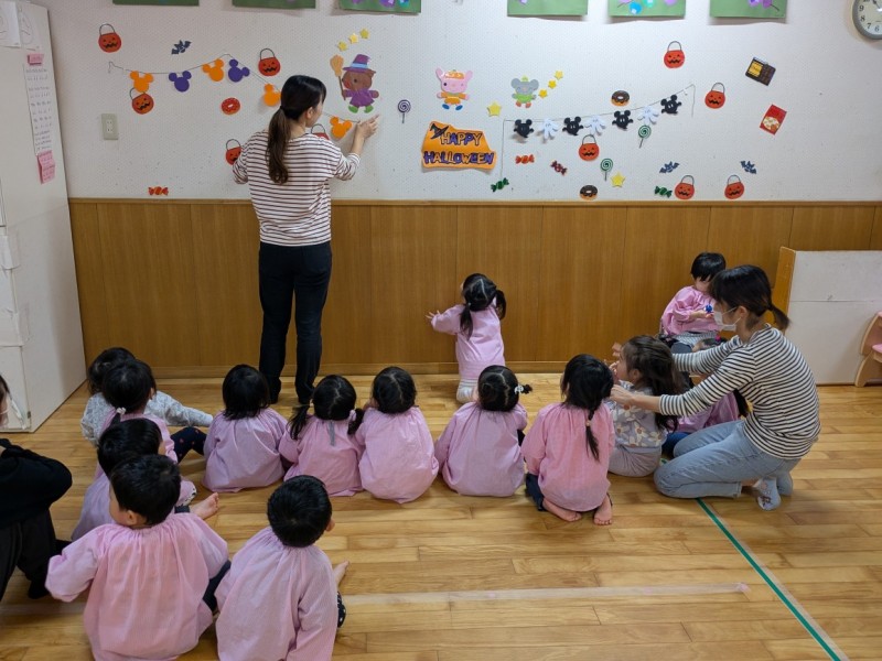 可愛い仮装をした子供達が歌に合わせてダンスをしたりお歌を歌ったりして
